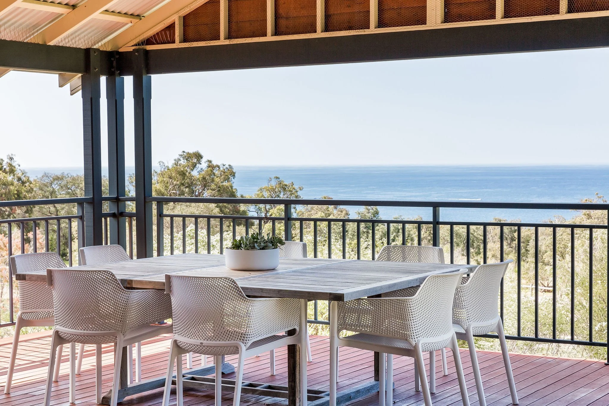 Enjoy your meal at the 8 seater dining table indoors, or at one of the two outdoor seating areas to make the most of the incredible ocean vistas.